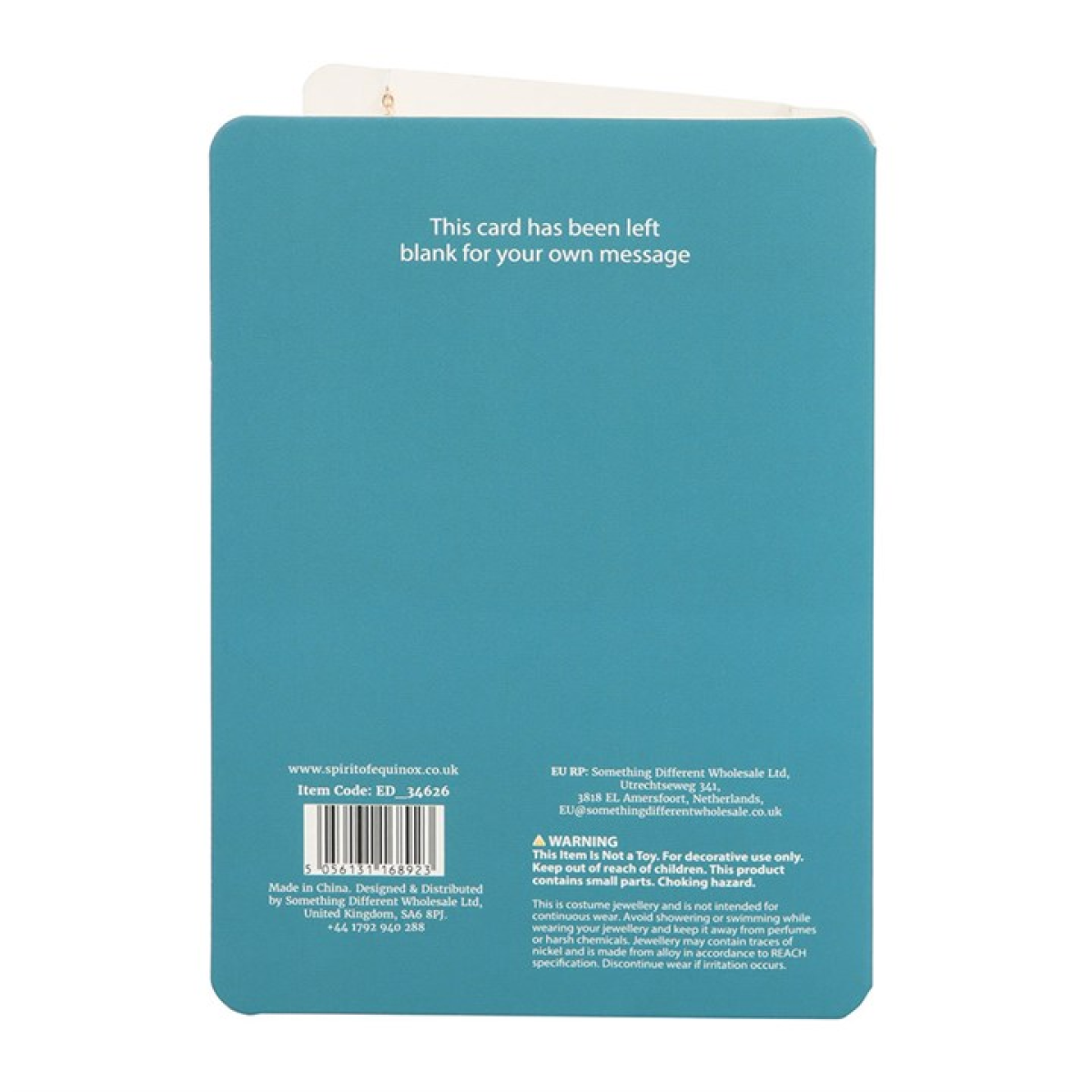 This dainty gold-tone stainless steel necklace features an all seeing eye pendant and comes beautifully presented on a turquoise greeting card adorned with star accents and the words 'Seen, Guided, Protected'. Includes a matching dark blue envelope with a coordinating all seeing eye design, making it a meaningful gift for any occasion. May contain traces of nickel and is made from alloy in accordance to REACH specification.
