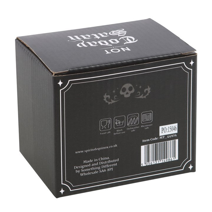 Start your day with a wink and this playful ceramic mug. It boldly displays "Not Today Satan" in gothic style, perfect for keeping pesky troublemakers away. Holds 300ml and safe to use in the microwave.