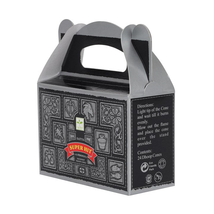 This adorable box holds 6 packs of Satya's Superhit backflow dhoop cones, bursting with delightful aromas. These cones are carefully crafted with top-notch ingredients for a lasting scent experience. Simply pair them with a backflow burner to create a mesmerizing smoke show.